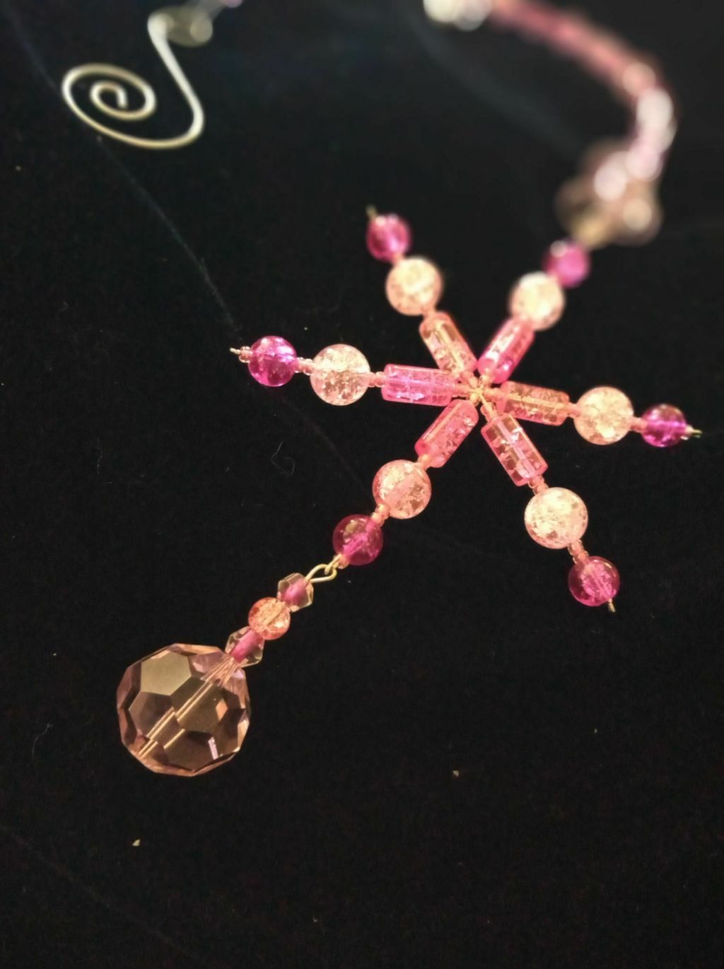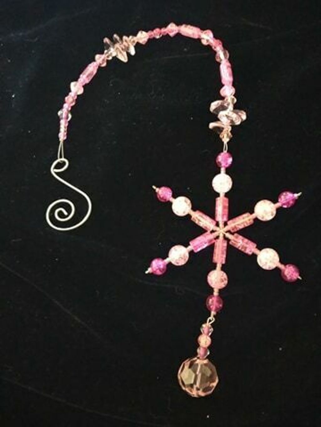 Suncatcher made with glass crystals.    Pink Snowflake
