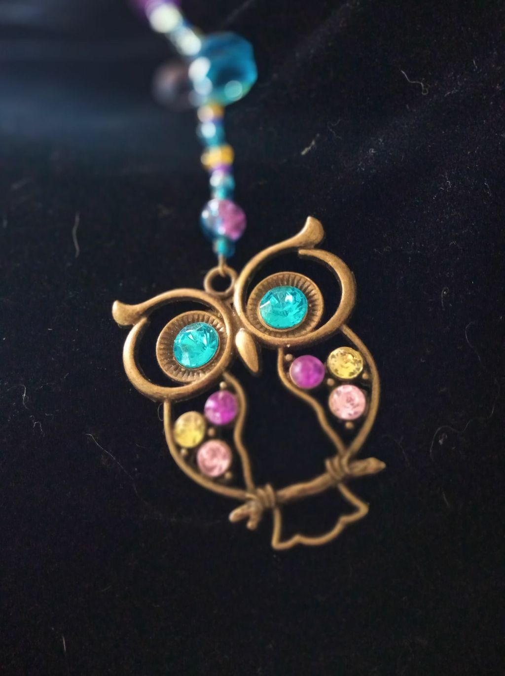 Suncatcher made with glass crystals. Rainbow Owl