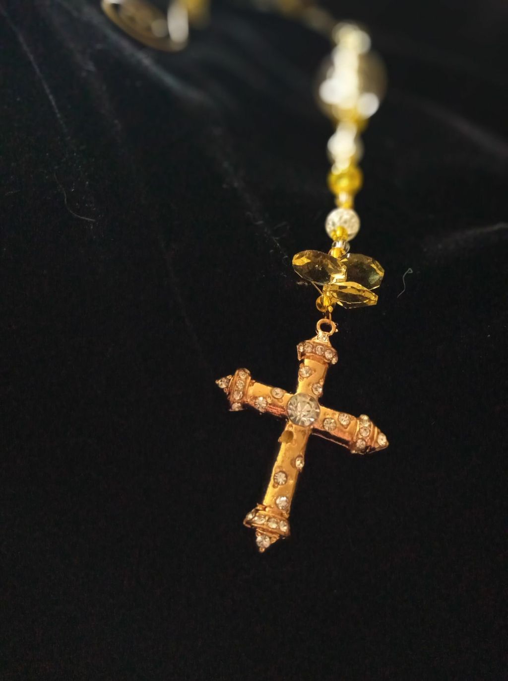 Suncatcher made with glass crystals.    Gold Diamond Cross